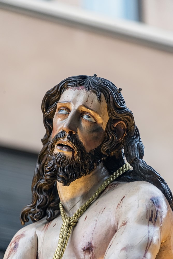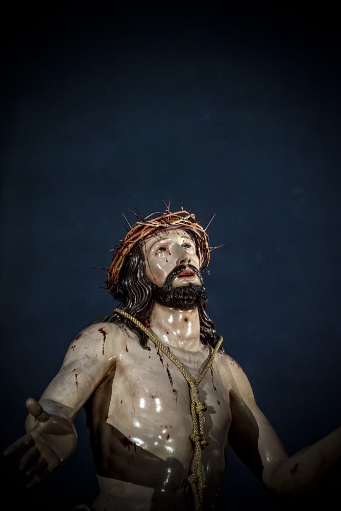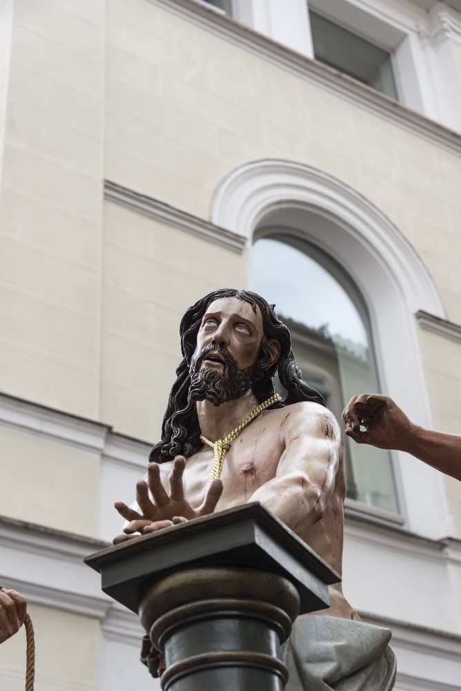 Nuestro Padre Jesús Flagelado (Escuela Castellana, h. 1650). Imagen principal del paso procesional del Azotamiento o Flagelación de Cristo, y se trata de una talla que representa a Jesús atado a la columna, cuya posible autoría, fechada hacia 1650, sea de Antonio de Ribera o de Francisco Díez de Tudanca.
