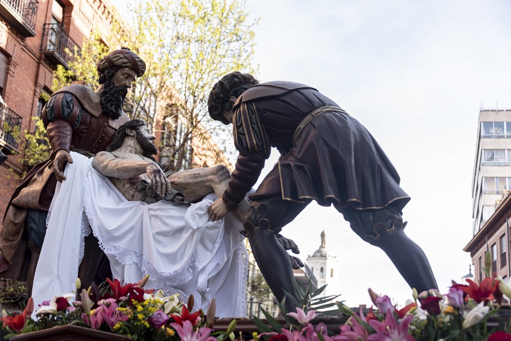 La Quinta Angustia (Gregorio Fernández, h. 1625). Pensada no para procesionar, sino como altorrelieve para el altar de un retablo costeado por D. Francisco de Cardenas, para una capilla de su propiedad en el Convento de San Francisco, donde consta que estuvo muchos años. Tras un tiempo perdida, Juan Agapito y Revilla la descubrió en la parroquia de San Martín, a la que había llegado desde dicho convento. Empezó a procesionar en 1927, cuando el Gobierno se negó a ceder La Piedad para las procesiones. Durante el año puede venerarse dentro de su retablo original.