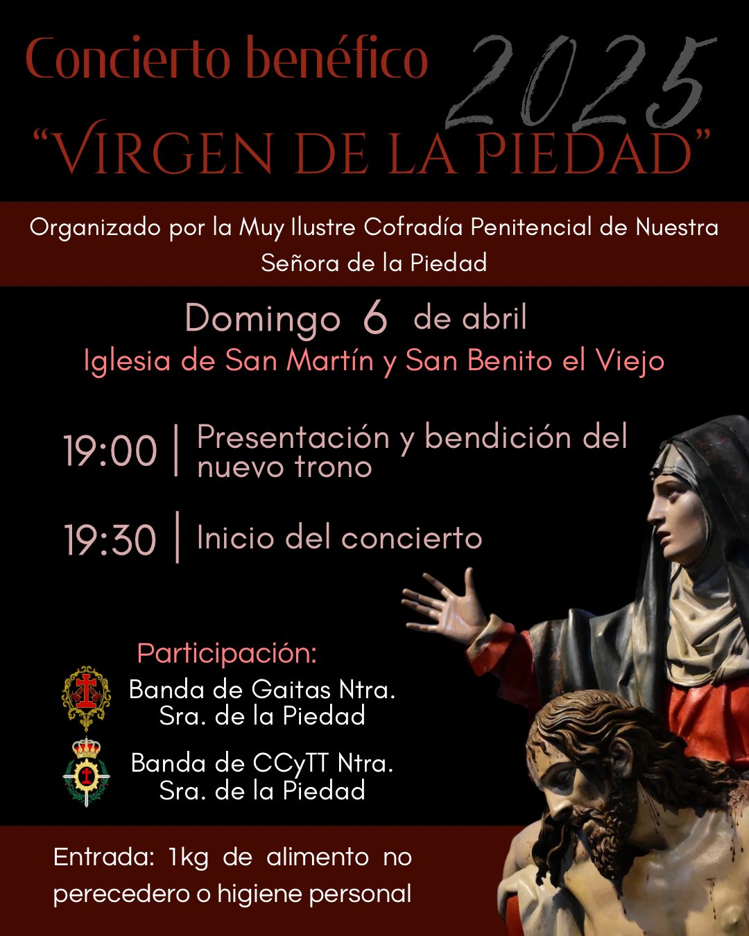 📢 Concierto Benéfico "Virgen de la Piedad 2025" - Presentación del nuevo trono
