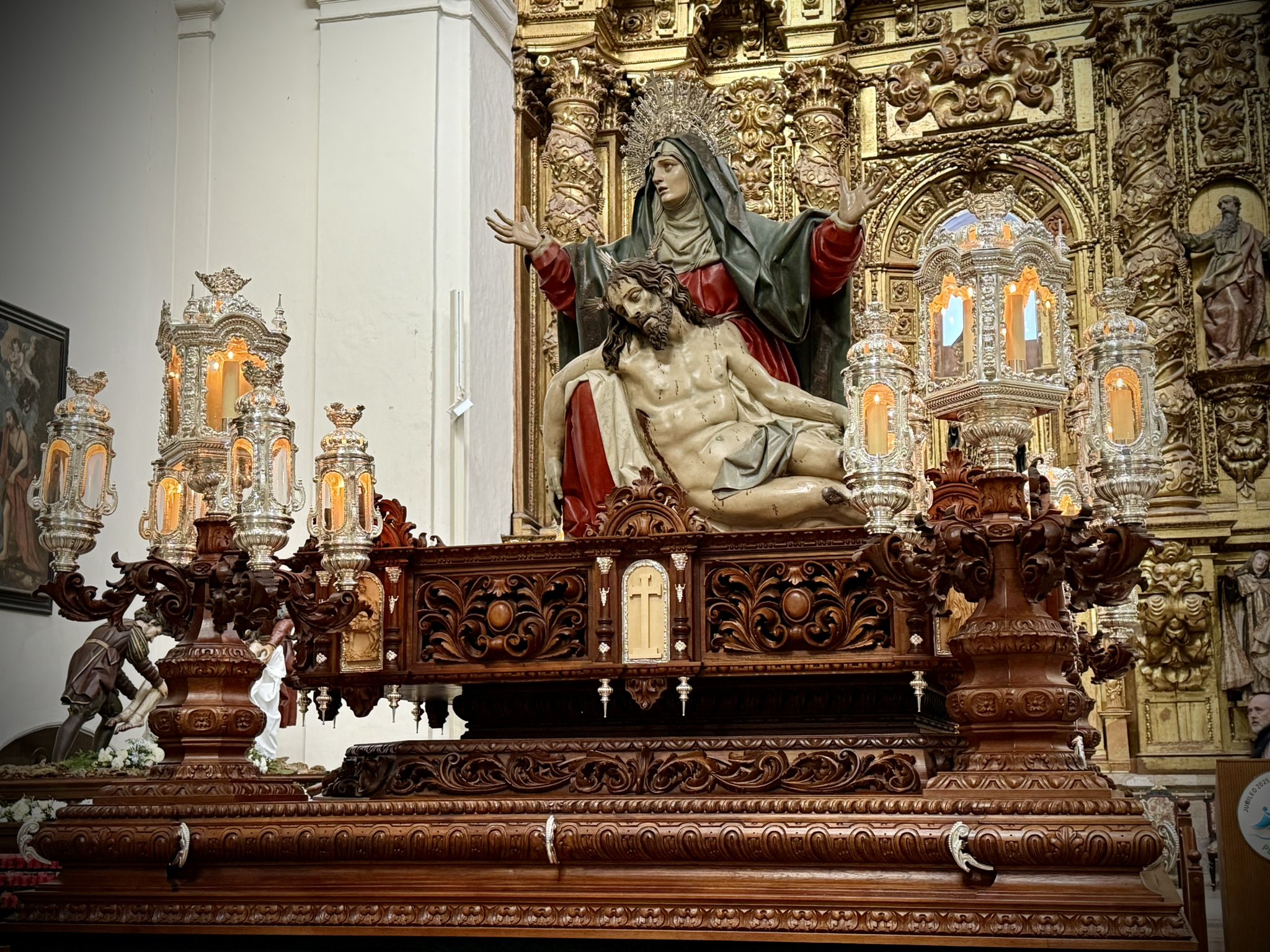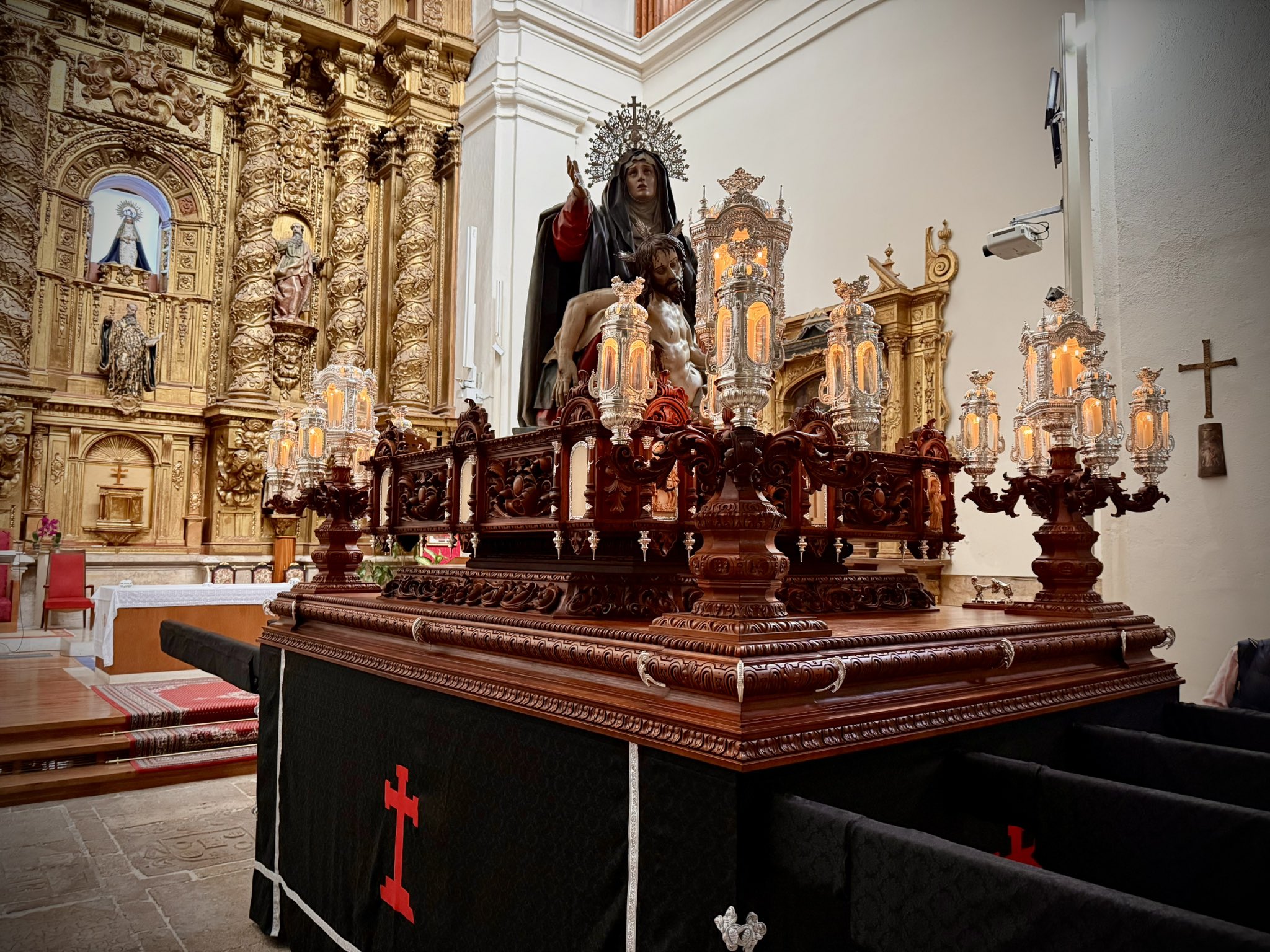 La Muy Ilustre Cofradía Penitencial de Nuestra Señora de la Piedad de Valladolid presentó ayer, domingo 6 de abril, las nuevas andas que portarán a su imagen titular, "La Quinta Angustia", durante la procesión del Miércoles Santo de este año. El acto, celebrado en la Iglesia Parroquial de San Martín y San Benito el Viejo, congregó a numerosos cofrades y fieles que acudieron para ser testigos de este momento tan esperado.