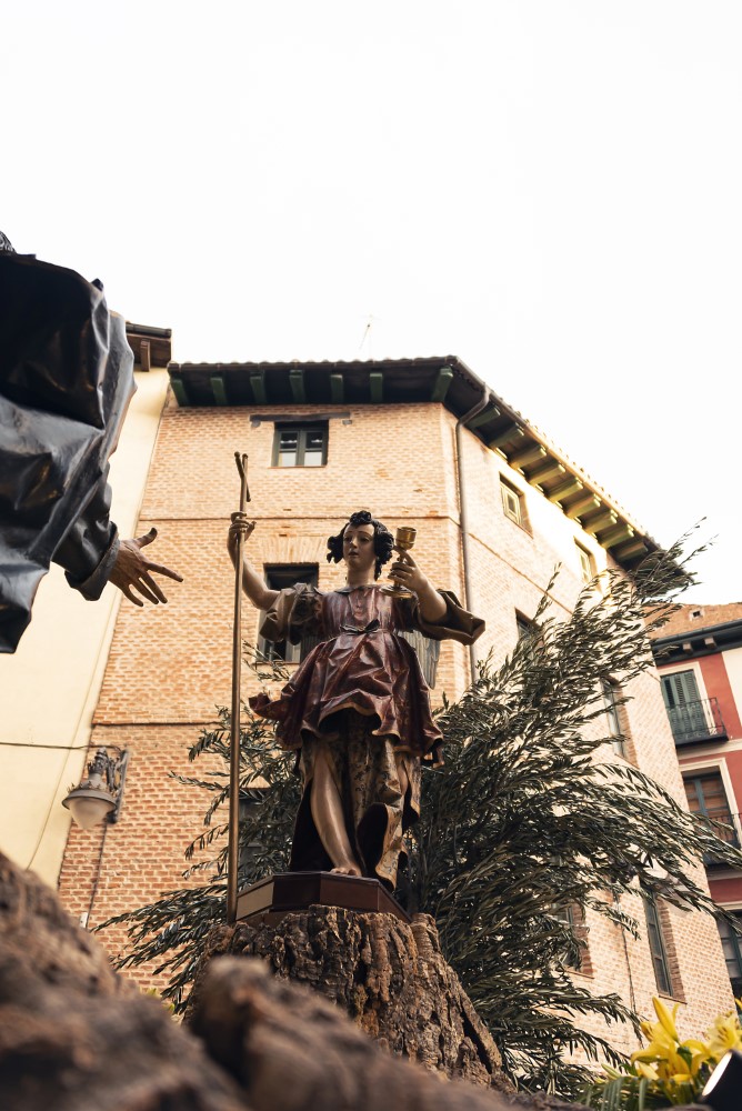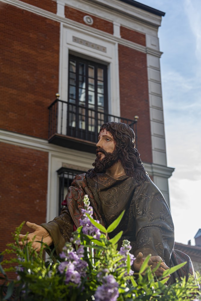 La Oración del Huerto (Andrés Solanes, h. 1629). Es propiedad y lo guarda la Cofradía de la Vera Cruz en su iglesia homónima, pero procesiona como paso titular de esta cofradía. Consta que la Vera Cruz pagó 150 reales a cuenta al autor en 1632. El paso fue policromado por Jacinto Rodríguez, Francisco García, López de Vallejo, Pedro de Carrillo y Gregorio Grijelmo. Tuvo dos pasos antecedentes en las cofradías de la Pasión y la Vera Cruz. Originalmente estaba formado por cinco figuras: Cristo, el ángel, Judas (pelirrojo, señalando con el dedo a Jesús) y dos sayones, uno con una lanza y otro con una linterna. Como en otros pasos, como El Señor Atado a la Columna o La coronación de espinas, la Cofradía de la Vera Cruz, en 1769,1 suprimió las figuras secundarias para realzar la figura de Cristo, de manera que éste quedó únicamente con el ángel. Las otras tres figuras se conservan en el Museo Nacional de Escultura. En 1993 y 1995 se volvió a montar completo para la Procesión del Santísimo Rosario del Dolor. Esta posibilidad ha quedado posteriormente descartada por la dificultad de colocar las cinco figuras en estriba en una carroza que está diseñada para dos. Además, el sayón de la lanza forma actualmente parte del paso Padre, perdonalos porque no saben lo que hacen de la Cofradía de las Siete Palabras, que procesiona en el Sermón de las Siete Palabras y en la Procesión General, ambos en Viernes Santo.