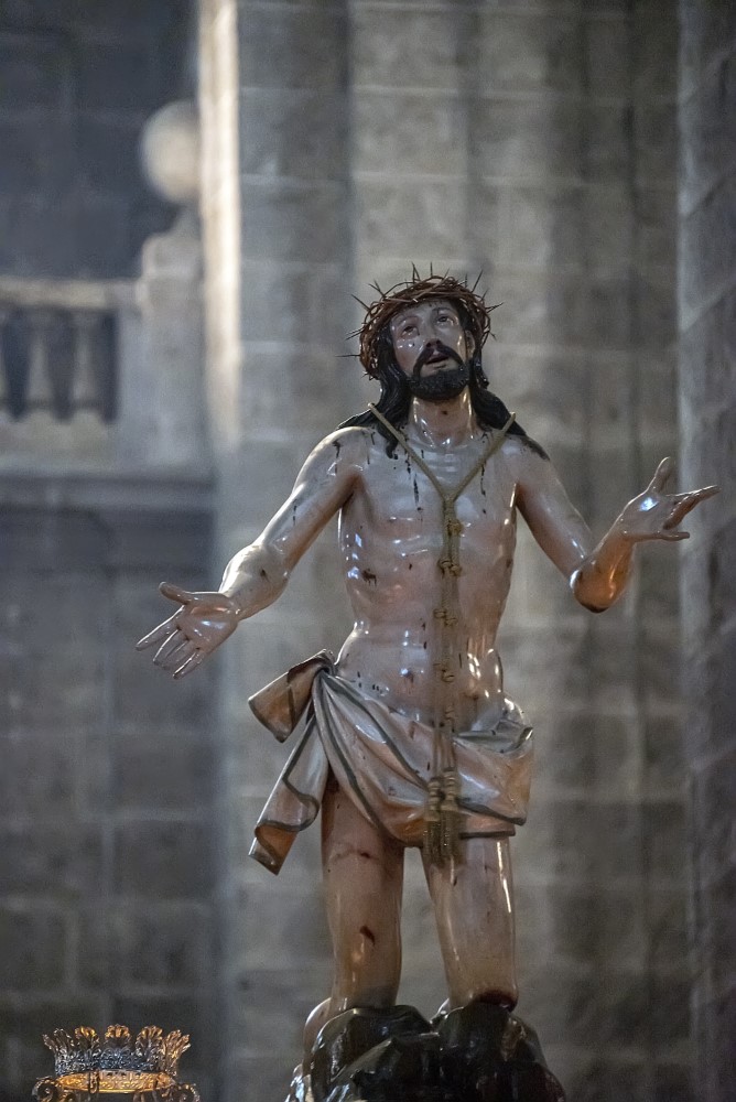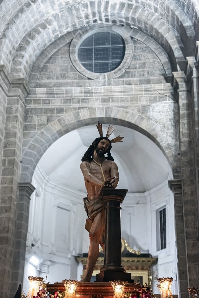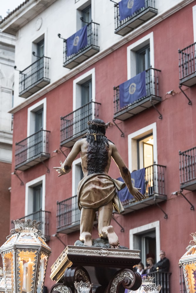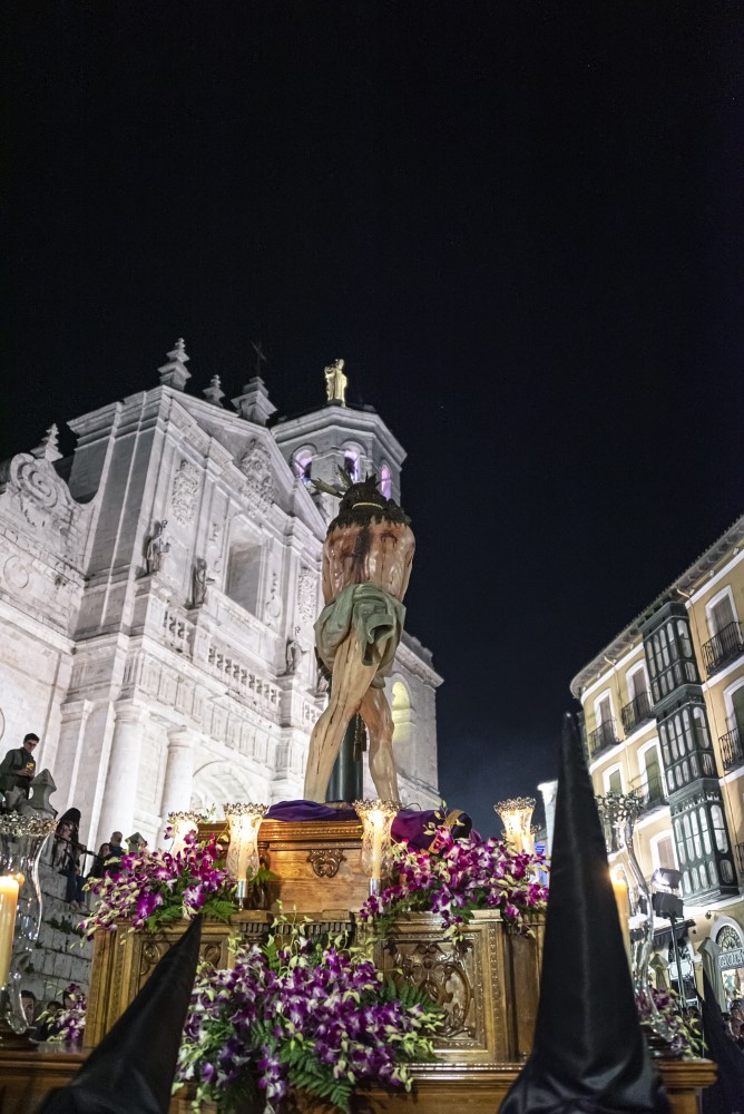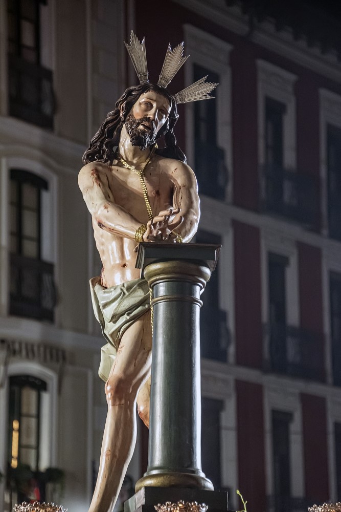 Nuestro Padre Jesús Flagelado (Escuela Castellana, h. 1650). Imagen principal del paso procesional del Azotamiento o Flagelación de Cristo, y se trata de una talla que representa a Jesús atado a la columna, cuya posible autoría, fechada hacia 1650, sea de Antonio de Ribera o de Francisco Díez de Tudanca.