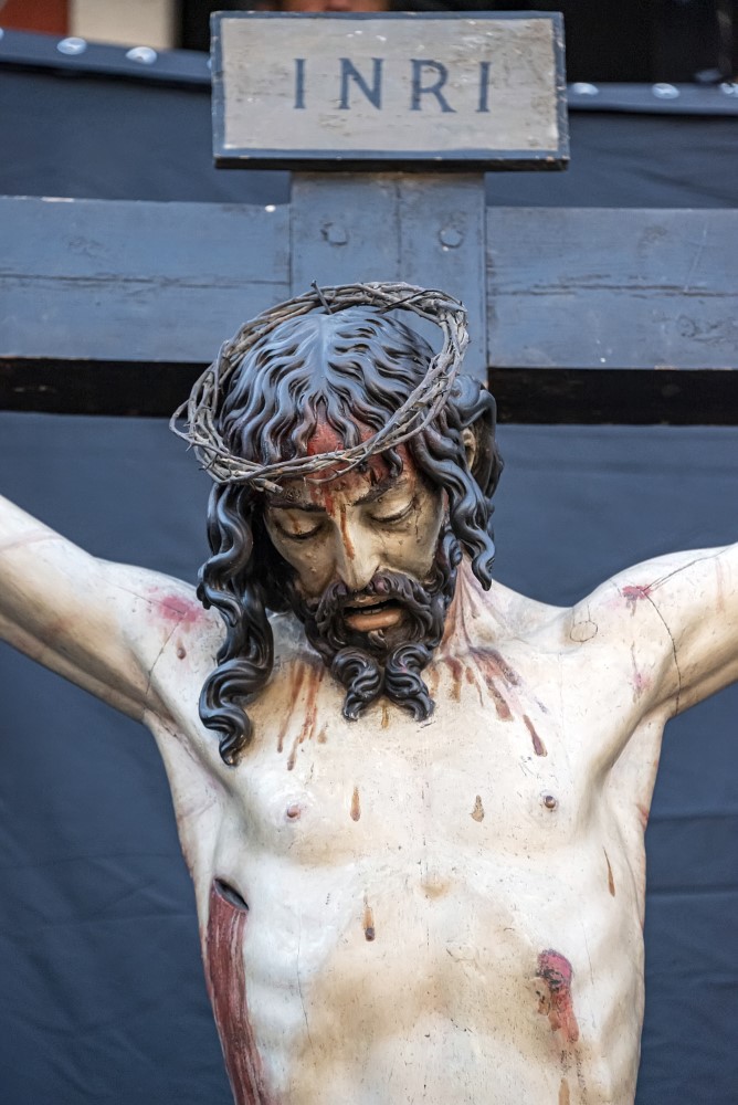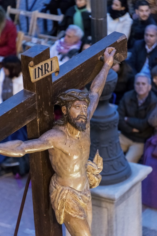 Hoy estarás conmigo en el Paraíso Conjunto procesional formado únicamente por un Cristo Crucificado. El "Cristo de las Batallas", como así se le conoce, es obra de Francisco de Rincón y recibe culto durante el año en la iglesia de Santa María Magdalena. Es de tamaño mayor del natural, caracterizado especialmente por los detalles de la raza judía: nariz aguileña, cabellos rizados y largos con barba terminada en punta y dividida en dos. Tiene corona de espinas tallada y la cabeza mirando al suelo
