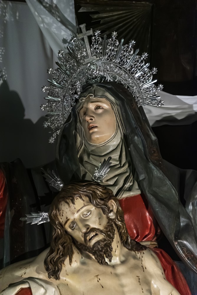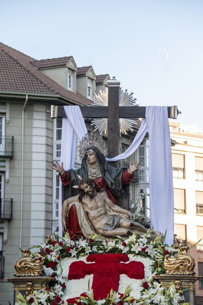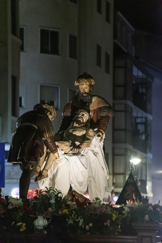 La Quinta Angustia (Gregorio Fernández, h. 1625). Pensada no para procesionar, sino como altorrelieve para el altar de un retablo costeado por D. Francisco de Cardenas, para una capilla de su propiedad en el Convento de San Francisco, donde consta que estuvo muchos años. Tras un tiempo perdida, Juan Agapito y Revilla la descubrió en la parroquia de San Martín, a la que había llegado desde dicho convento. Empezó a procesionar en 1927, cuando el Gobierno se negó a ceder La Piedad para las procesiones. Durante el año puede venerarse dentro de su retablo original.