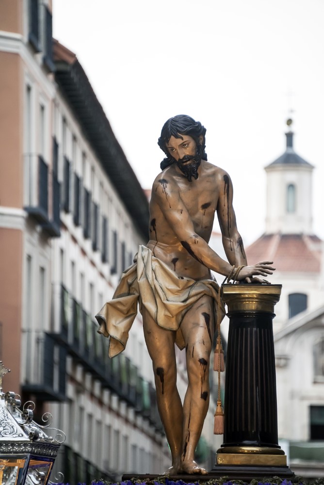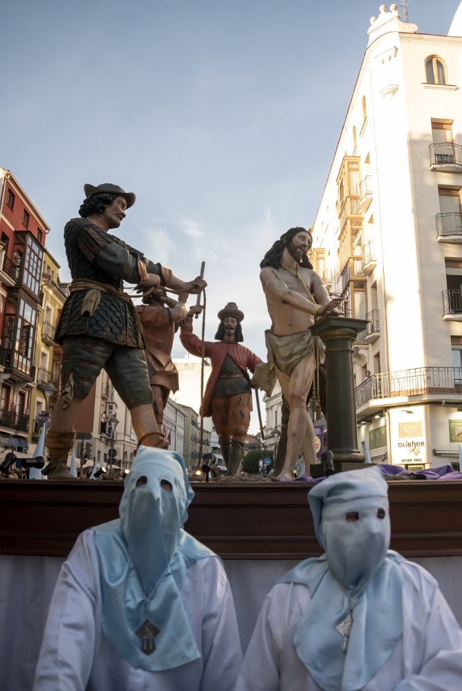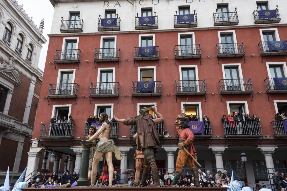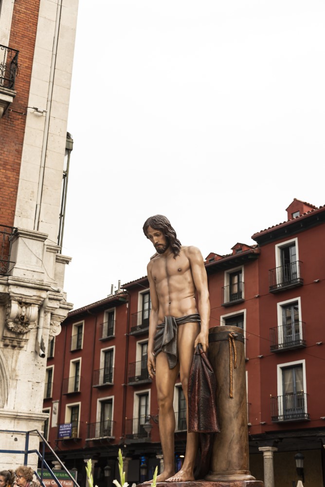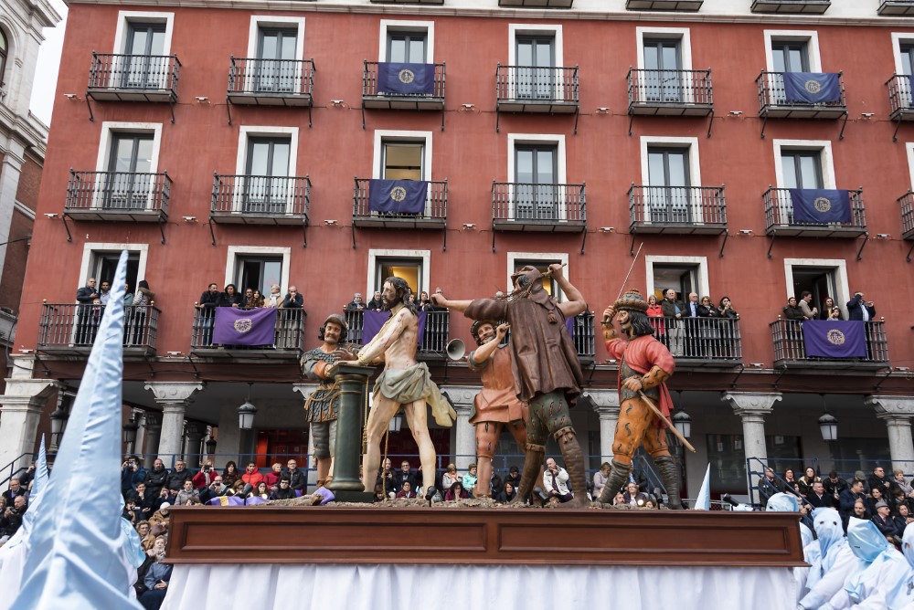El Azotamiento del Señor, o La Flagelación del Señor (Escuela Castellana, h. 1650). Propiedad de la Cofradía de La Sagrada Pasión; el Cristo se venera en su iglesia (San Quirce y Santa Julita) y el resto de figuras se exhiben en el Museo Nacional de Escultura. Sólo se conoce la autoría de la figura del sayón azotador de la izquierda, original de Gregorio Fernández. Ninguna documentación avala la creencia popular de que el sayón que tira de la cuerda, popularmente "el chato", sea también suyo. Estos dos sayones pudieron pertenecer a un antiguo paso de El Azotamiento procesionado por la Vera Cruz. Consta que el Cristo fue policromado en 1650 por Pedro Antecha, y que se veneraba en la antigua iglesia de la Pasión, cuya Cofradía armaba el paso, según se cita en unas instrucciones de 1661. El paso completo fue reconstruido por Juan Agapito y Revilla para la restauración de la Semana Santa (1921-1922).