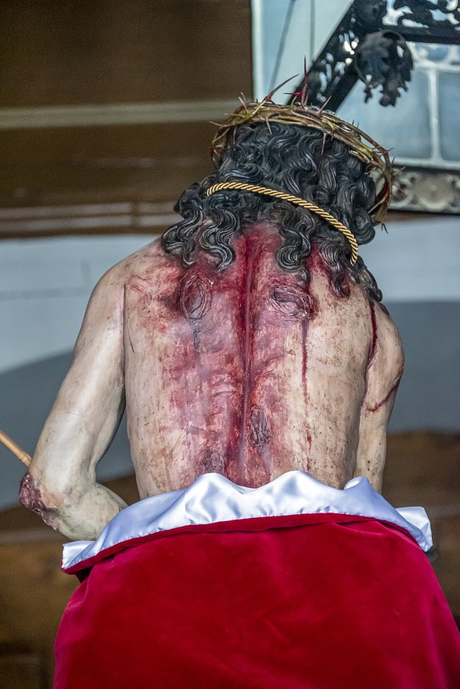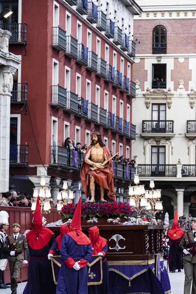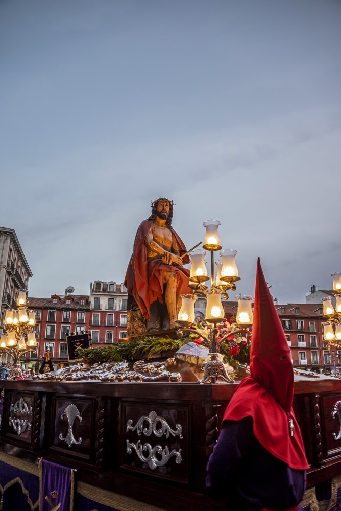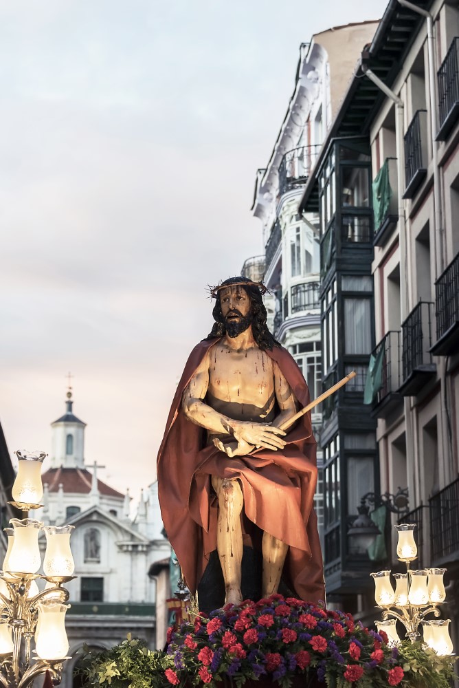 Ecce Homo (Gregorio Fernández, h. 1620). Es propiedad de la Cofradía de la Vera Cruz, pero procesiona como paso titular de esta cofradía, motivo por el que es llamado Cristo de la Caña o de los Artilleros, al ser de este cuerpo militar quienes lo procesionan. Formó parte del paso La Coronación de Espinas de la cofradía de La Vera Cruz junto a otras tres figuras actualmente integradas en el paso Padre, perdónales porque no saben lo que hacen. La corona es de espino natural, pues Gregorio Fernández nunca las labró sobre el cabello de Jesús: las trenzaba y colocaba para dar por terminada su obra. Este Cristo sustituyó al del Gallo o de la Humildad que estuvo en la iglesia de San Antón y hoy se encuentra en el Santuario Nacional.