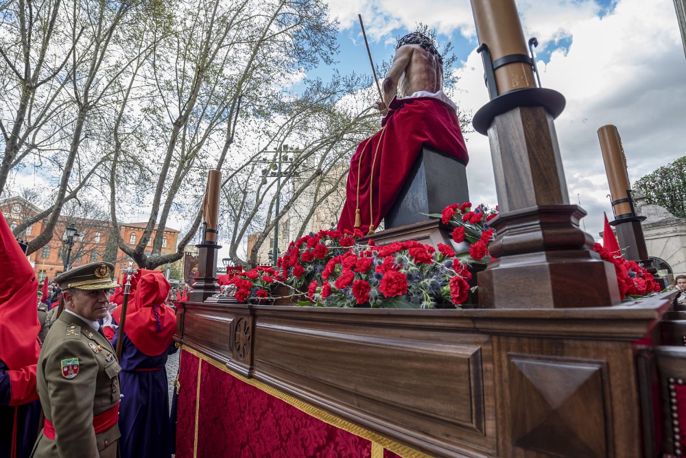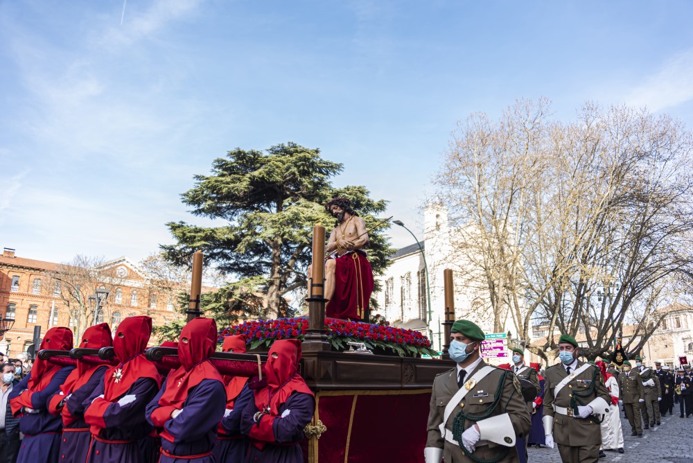 En sus primeras salidas procesionales, el “Cristo de la Humildad” desfilaba junto al Ecce Homo de la Vera Cruz, lo que llevó al arzobispo Don José María Cos y Macho a prohibir la presencia de dos imágenes similares en la misma procesión. Por ello, el Ecce Homo de la Vera Cruz dejó de salir acompañado. Posteriormente, los artilleros solicitaron acompañar la imagen del “Cristo de la Caña” de Gregorio Fernández, propiedad de la Vera Cruz, lo que fue autorizado por el arzobispo en 1944.